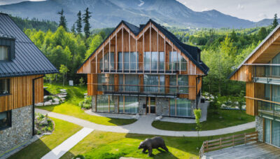 The stylish mountain resort directly below Lomnický štít combines the comfort of modern accommodation with the atmosphere of Tatra nature. It offers 44 rooms and suites with natural materials, balconies and views of the High Tatras. The hotel is inspired by natural elements, which are reflected in the architecture and design. There is a lobby bar with a fireplace, a modern bistro restaurant and an elegant wine bar. The wellness centre offers an indoor pool with counter-current, an outdoor pool with massage jets, saunas, relaxation areas with views and a fitness centre. Families will appreciate the children’s corner, children’s sauna and comfortable family apartments. The hotel is located directly at the valley station of the cable car to Skalnaté pleso and Lomnický štít. There are hiking trails, cycling trails and ski slopes in the vicinity. Facilities include a 24-hour reception, free Wi-Fi, ski storage, underground parking and the possibility of arranging a transfer. There are also conference rooms suitable for corporate and social events. Hotel Elements is a place where modern design, nature and sincere hospitality meet.