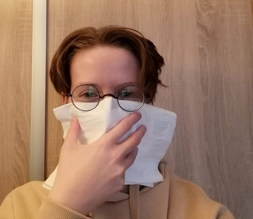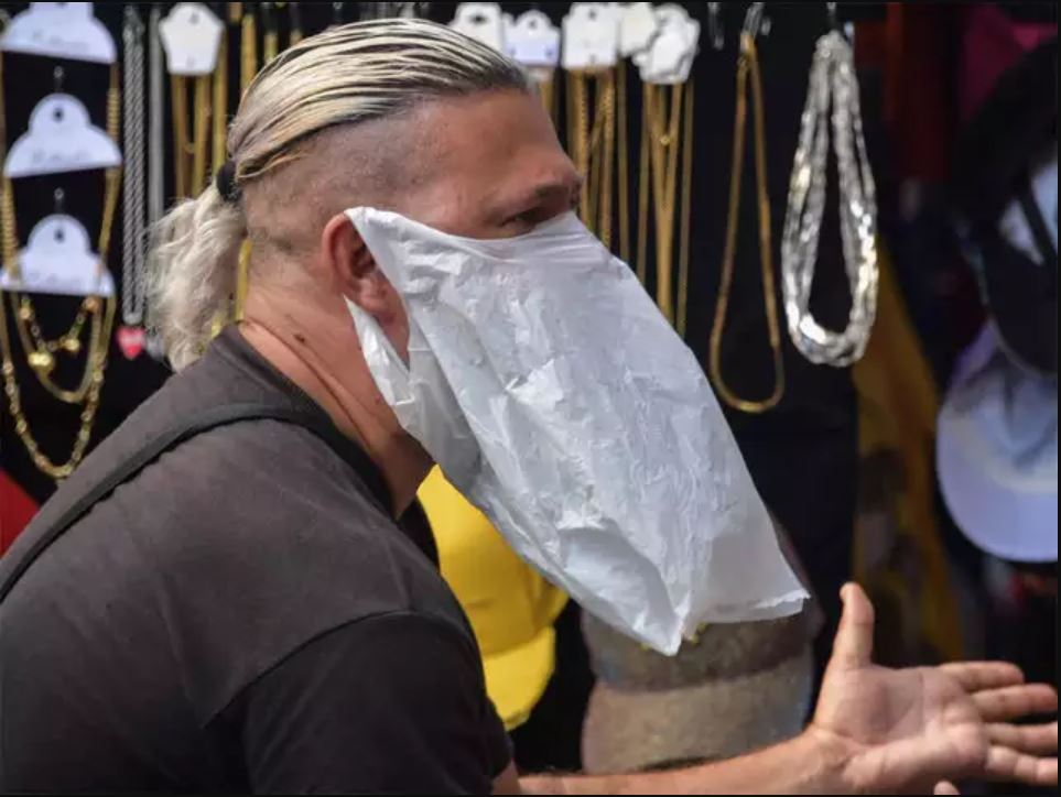 Podobne to bolo aj u nás na Slovensku, keď sa tiež vyskytli prípady ľudí, ktorí kvôli nedostatku rúšok zháňali náhradné riešenia. Niektorí si rúška šili, no iní, možno menej šitia zdatní sa vynašli takto: