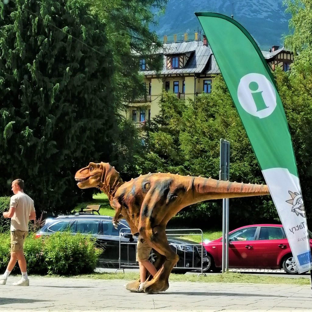V čase, keď sa otváral Dinopark v Tatrách po Smokovci pochodoval dinosaurus, ktorý prísne bezpečnostné nariadenia splnil do bodky.