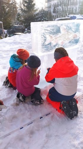 Projekt umeleckých ľadových výtvorov a sôch je výsledkom spolupráce miestnych organizácií a podnikov cestovného ruchu a detí a učiteľov mesta Vysoké Tatry.